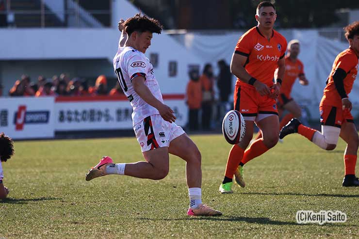 クボタさんの大きなFW相手に自分たちがどう戦うかというのを考えながら、今週準備してきたんですけど、そこが出せなかった。相手の大きなFWを走らせながらプレーしたかったんですけど。キックの使い方もちょっと僕もあんまり良くないプレーがあったんで、もうちょっと賢くキックを使いながらできたらなと思います。