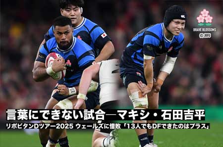 16日、ラグビー日本代表はウェールズ代表との一戦に挑み、23-24と1点差で欧州遠征4戦目を終えた。試合後にNO8マキシファウルア(クボタスピアーズ船橋・東京ベイ)とWTB石田吉平(横浜キヤノンイーグルス)の2人が...