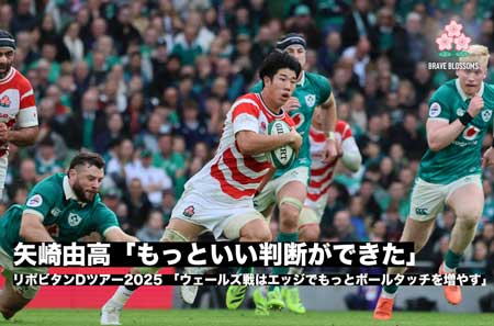 ラグビー日本代表は8日、「リポビタンDツアー2025」欧州遠征第2戦、アイルランド代表とダブリン・アビバスタジアムで対戦し、10-41で敗れた。FB矢崎由高は先週の南アフリカ戦に続き先発で出場。トライこそなかったも...