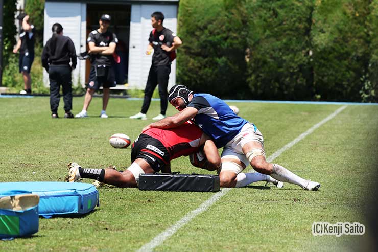 いや、本当に嬉しいですね。東芝ブレイブルーパスの中にはボールを持って前に出れる選手がたくさんいる中で、僕ができることがあるとしたらタックルしかない。元々、タックルが好きだったから、タックルたくさん決めてチームに貢献したいなと思って今シーズンやってきました。選手に選ばれるのが一番うれしいですね。来年もっともっとタックル回数をふやして成功率を増やして、来年500タックル(笑)。