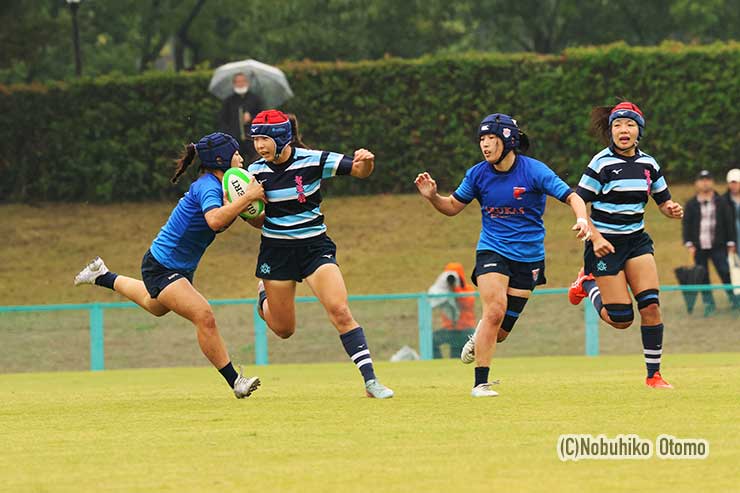 六浦はアタックを継続。④佐藤多恵がゴール前に持ち込むもノットリリースザボールでトライならず