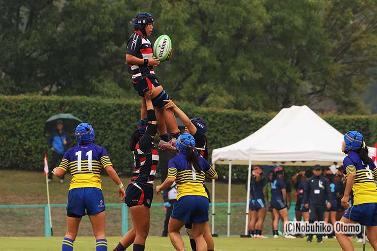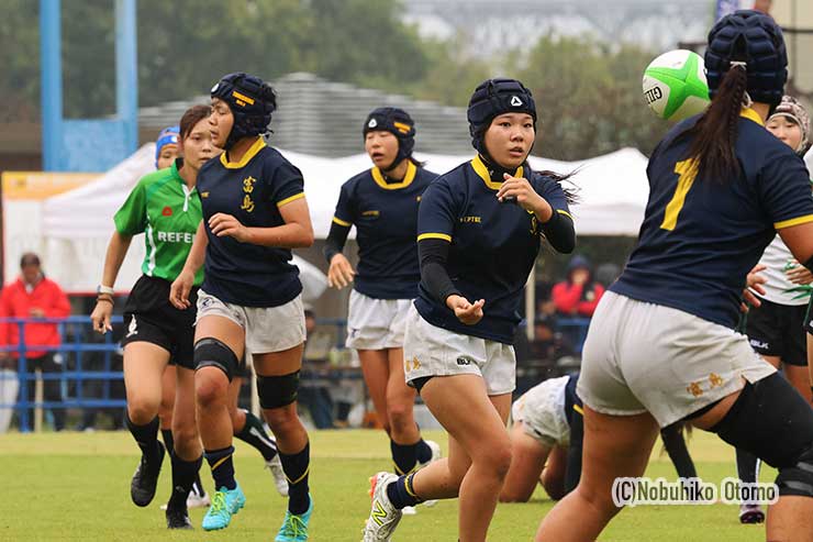準決勝でメリノールと引き分けながら悔しい抽選負けを喫した福岡が追手門を圧倒。エース大内田彩月はメリノールとの準決勝に続く2試合連続2トライと爆発し、高校世代トップレベルのポテンシャルを改めてアピールした。