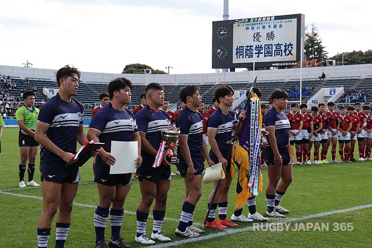 16日、横浜・ニッパツ三ツ沢球技場では、第105回全国高校ラグビー大会神奈川県予選決勝が行われた。記念大会ということで出場枠が5枠増えて56校になった。神奈川県も1枠増えて、第1地区は桐蔭学園が3大会連続23回目、第2地区は東海大相模が3大会ぶり11回目の全国大会出場を決めた。