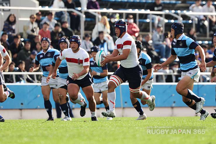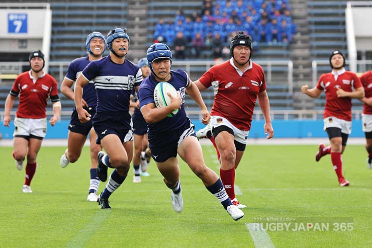 ほっとしています。でもここで満足することなく、あと39日後にある花園にむけてしっかり準備していきたいと思っています。今日は自分の持ち味でもあるボールキャリーだったり、チームを鼓舞する声がけというのが、しっかり60分間できたんじゃないかなと思います。声がけの部分は昨年の主将から学んだことをやったり、プレーでもひっぱっていけるように、成長できたんじゃないかと思っています。