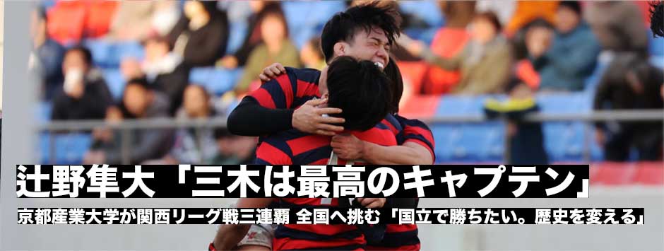 「僕にとって三木は最高のキャプテンです」京都産業大学が初の関西リーグ戦三連覇を果たした。決勝ゴールをきめる大役を果たしたFB辻野隼大は試合後にそう話した。辻野と三木は学年こそ1学年違うが、関係性は「同輩」。辻野いわく「特別な存在」なのだ。