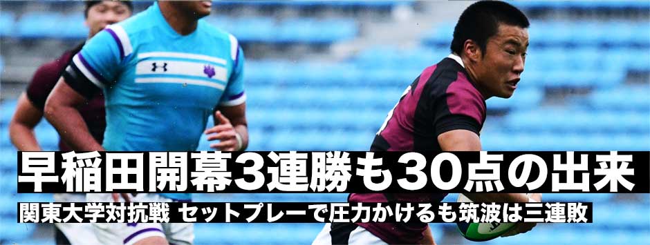 早稲田大と筑波大の注目の一戦は、早稲田大がセットプレーでプレッシャーを受けるものの、接点で互角以上に戦い、アタックで勝利した試合となった。