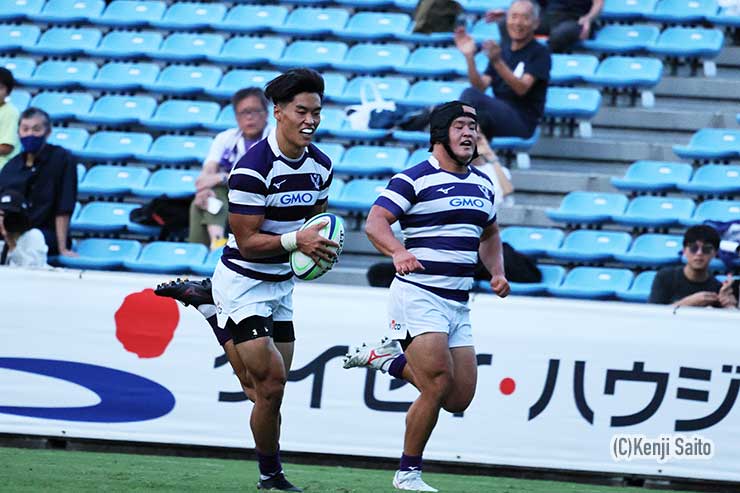 後半は完全に流れを掴んだ明治がトライを量産。先制トライを決めた物部を始め後半だけで8トライを決めて13トライを決め91得点をあげて今季1勝目を挙げた。プレーヤーオブザマッチには、ハットトリックを決めた明治・FL物部耀大朗、モストインプレッシヴプレーヤーには青学・荒川真斗が選ばれた。