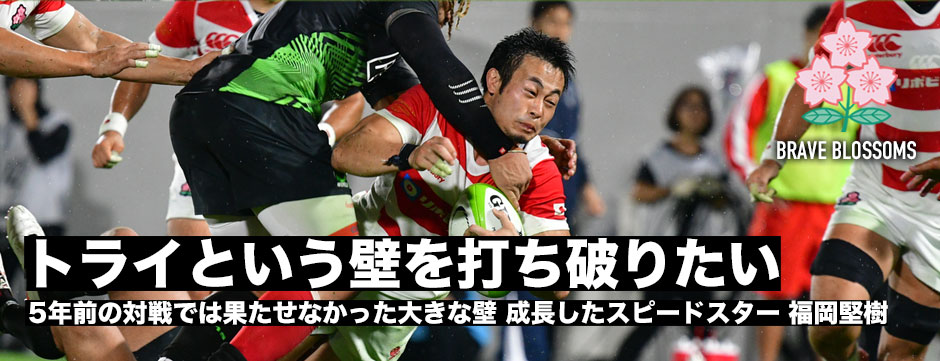 印象的だったのは前半21分、敵陣に攻め込んだジャパンXV。SO田村優のキックパスをキャッチした福岡はオールブラックスFBネヘ・ミルナースカッダーと対峙し、スピードで抜き去りトライをとったシーン。それだけでなく、ボールを持てばなにかやってくれるのではと期待したくなるプレーで会場を沸かせた。