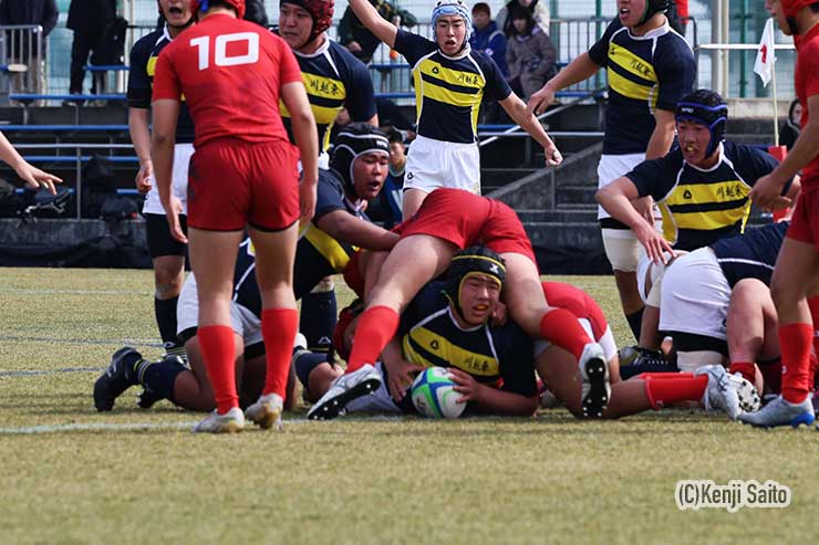 後半は目黒学院にシンビンが出たこともあり、桐蔭学園が攻撃力を発揮し、4トライを重ねて42-14で快勝し、23大会連続24回目の選抜出場となった。