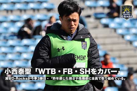 今シーズン好調の浦安D-Rocksが、横浜キヤノンイーグルスに勝利し、3勝目を挙げた。ここまで全試合でメンバー入りしているSH小西泰聖。昨年とのチ...