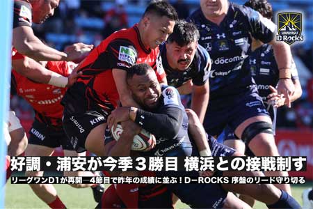 1月17日(土)、NTTジャパンラグビーリーグワン第5節が行われ、東京・秩父宮ラグビー場では、東芝ブレイブーパス東京と浦安D-Rocksと対戦。後...