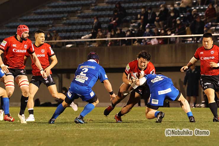 ラグビーリーグワン・ディビジョン1、4位の横浜キヤノンイーグルスは、秩父宮ラグビー場で静岡ブルーレヴズと対戦。前節のヴェルブリッツ戦を39-7したイーグルス。対するブルーレヴズはここまで2勝となかなk勝ちきれない試合が続いている。戦前はイーグルス優位かと思われた試合は、最後の最後までもつれる接戦となった。