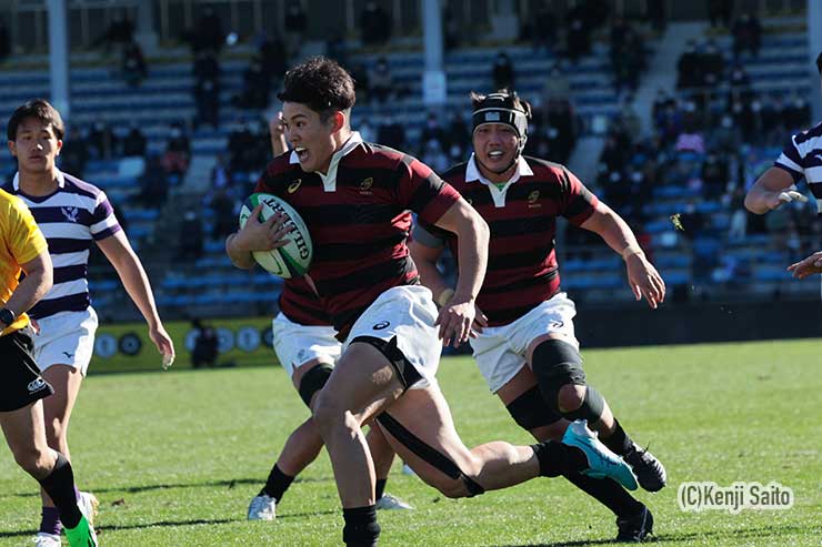 昨年と同じカードで敗れた早稲田は、WTB松下怜央の先制トライと、SO吉村紘の2本のロングPGで前半を13-14と僅差で折り返すと、後半17分、WTB松下怜央、さらに19分、SH宮尾昌典が相手のパスをインターセプトで明治を引き離す。