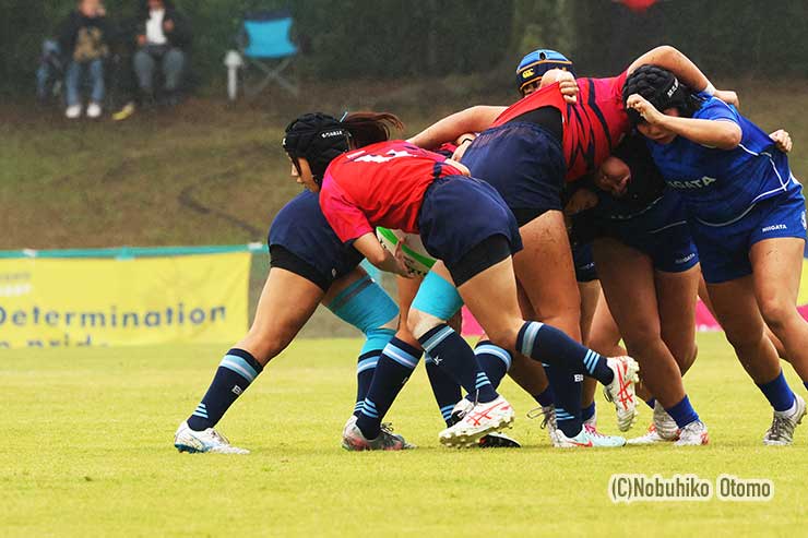 新潟は開始2分にSDSメンバー⑦細川優那のトライで先制すると4トライを奪い前半を26-0とリード。後半も弘前の反撃を冷静なDFで止め、⑧狩野梨奈、⑥大竹未久がトライを加え圧勝した。