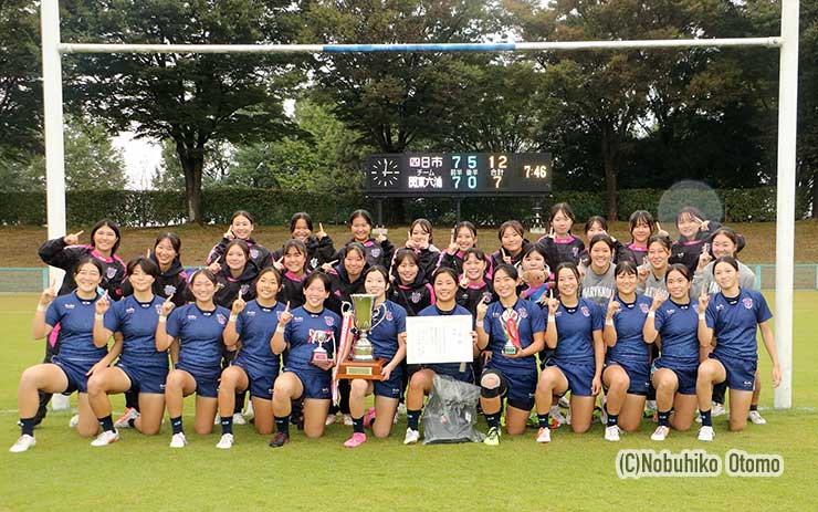 「女子の花園」第8回全国U18女子セブンズは25-26日、熊谷ラグビー場Bグラウンドで行われ、四日市メリノールが準決勝で福岡RFCと引分け抽選で決勝に進み、決勝では3連覇を狙う関東学院六浦を12-7で破り初優勝を飾った。