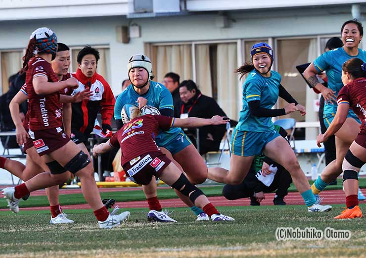 前半9分、PR柏木那月のトライでフェニックスが先制