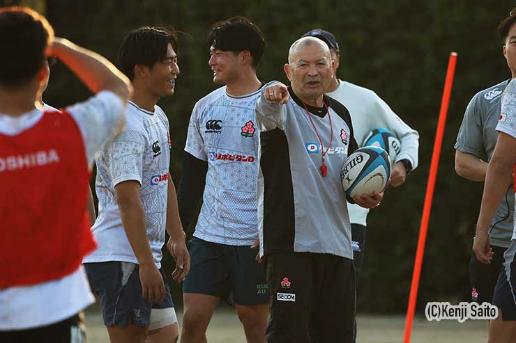 春を感じる陽気の中、みっちりと2時間の練習のあと、直接指導していたエディー・ジョーンズHCが報道陣に対応した。