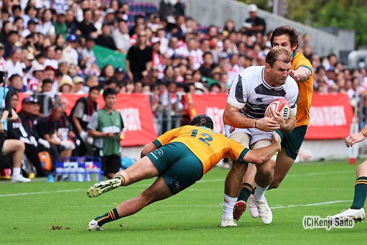 18日、JAPANXVはオーストラリアAとの強化試合に挑み7‐71で大敗を喫した。デーヴィッド・ヴァンジ―ランド、タイラー・ポール(2人ともクボタスピアーズ船橋・東京ベイ)は、80分フル出場を果たした。来週に向けてこの負けをどう活かしていきたいか試合後話を聞いた。